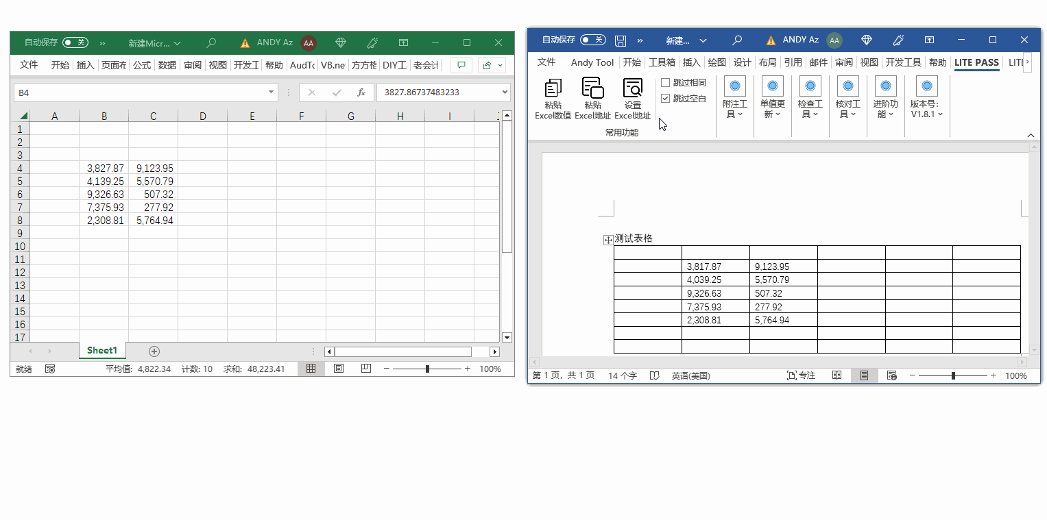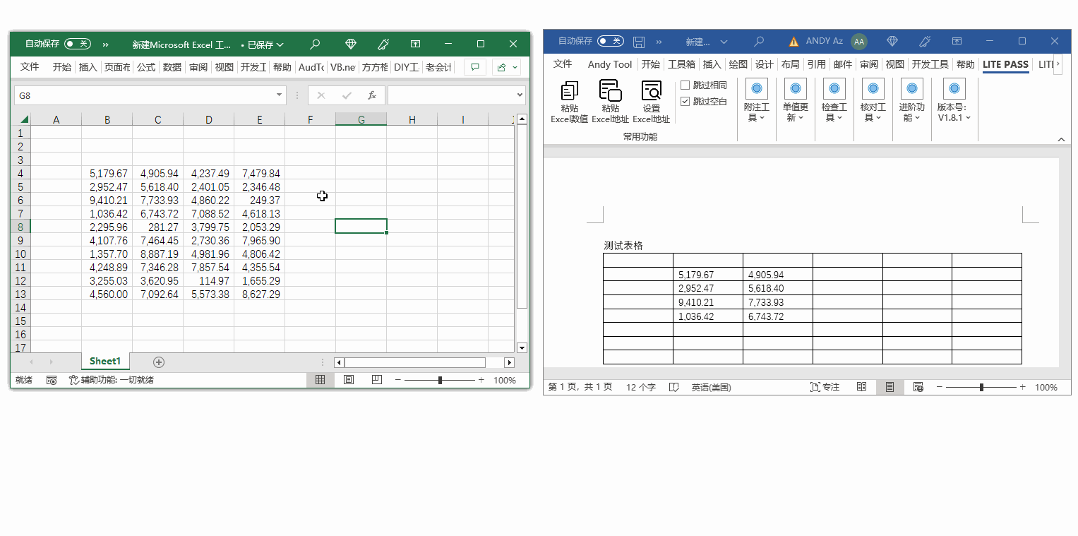 该功能的作用是批量向word文档的单元格中粘贴excel数据(不改变原有的格式)