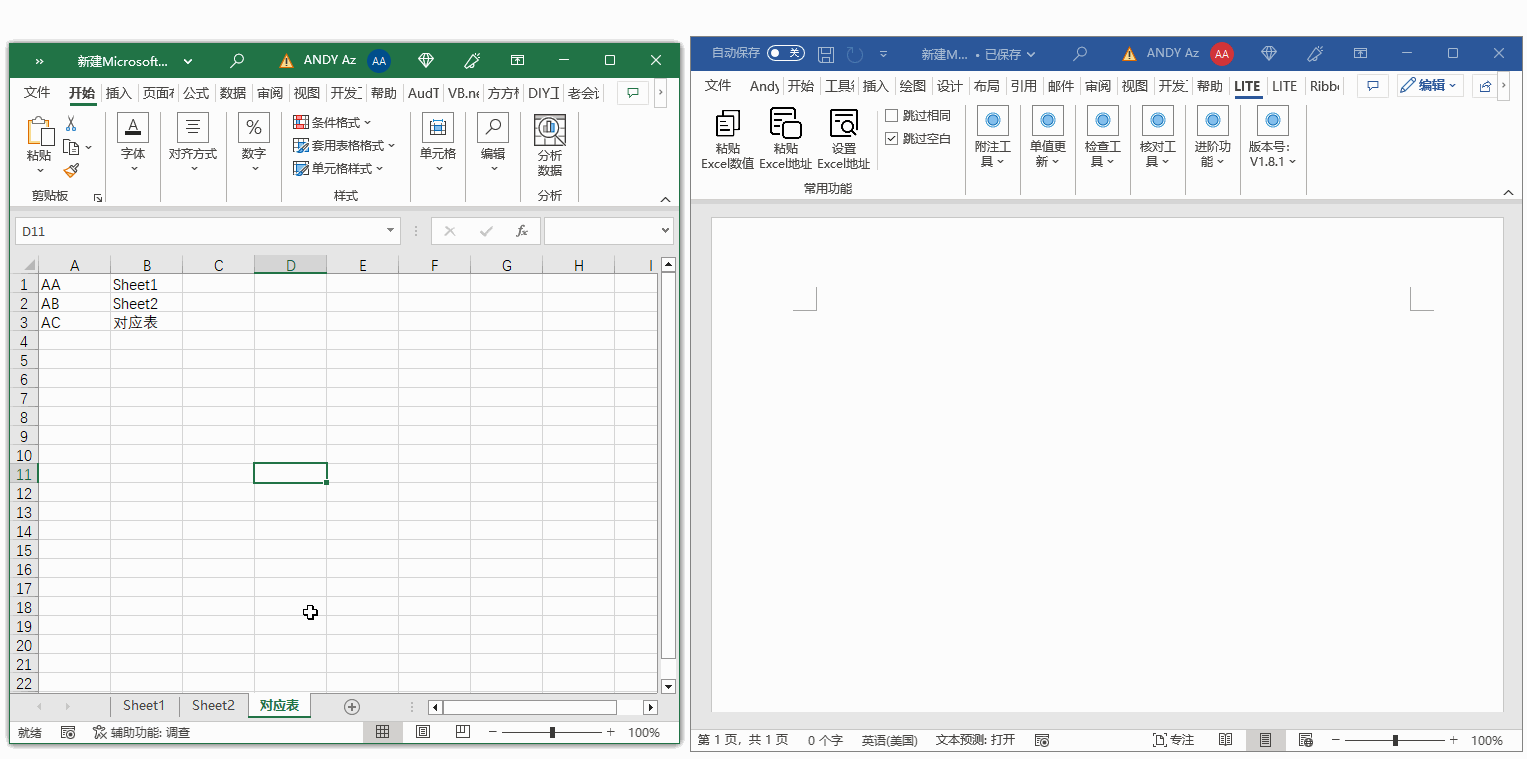 1、“对应表”是按照sheet次序按顺序生成,后续有新增表格的话请手动在对应表中补充对应关系
