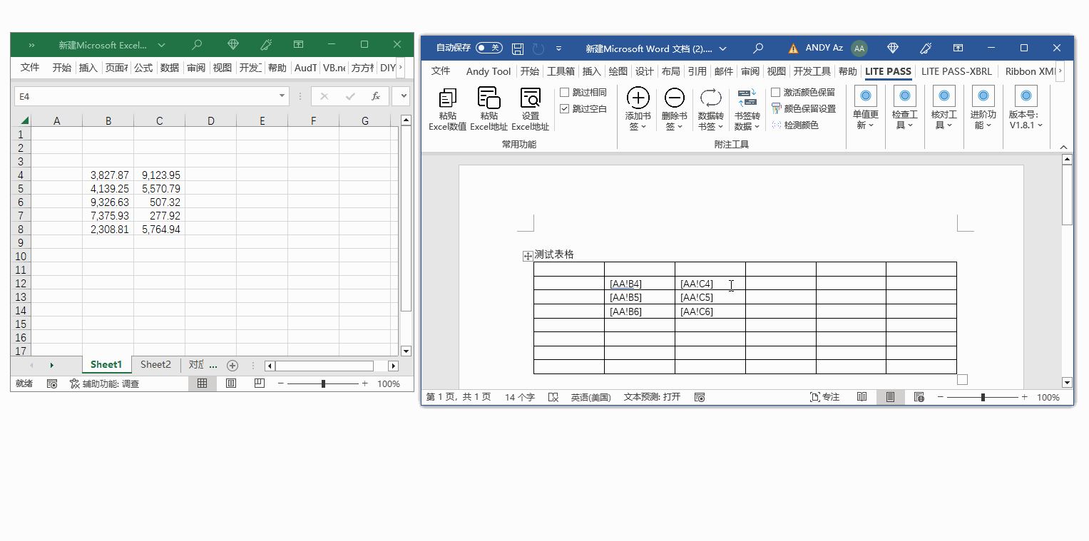 该功能的主要作用是将选择的Word表格中的书签地址提取到Excel中,此时可以在Excel中修改书签地址,然后通过读取标签将在Excel中修改好的书签地址导回Word。使用该功能修改书签不会破坏修订痕迹。