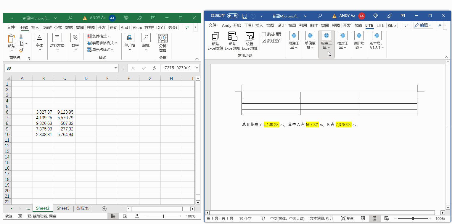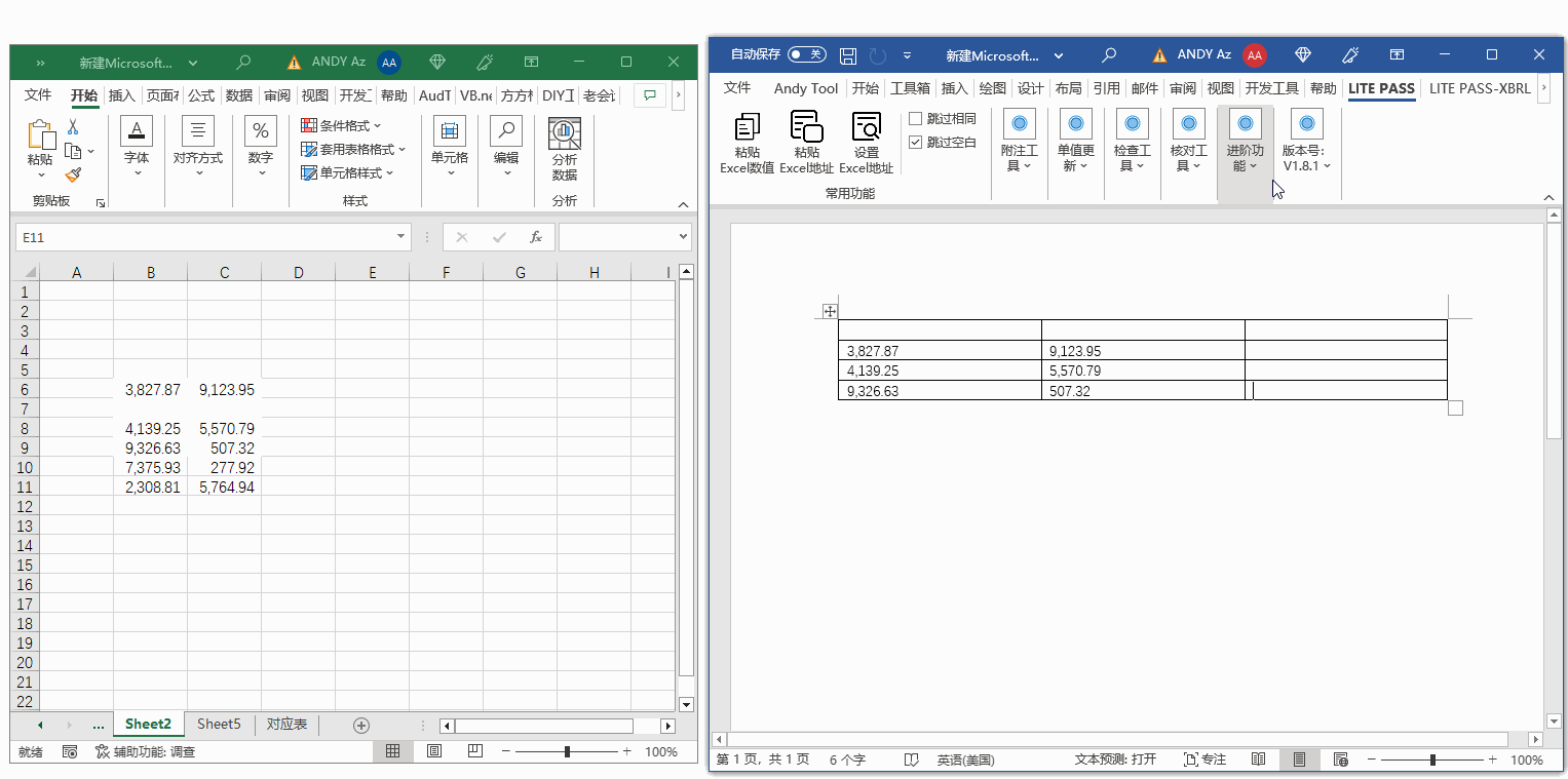 该功能的主要作用是将word表格中的数据导入excel,从而利用excel中预先设置好的加总检查,尾差检查等公式对word表格的数据进行核查
